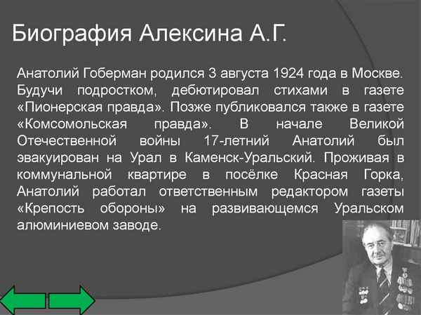 Краткая биография алексин