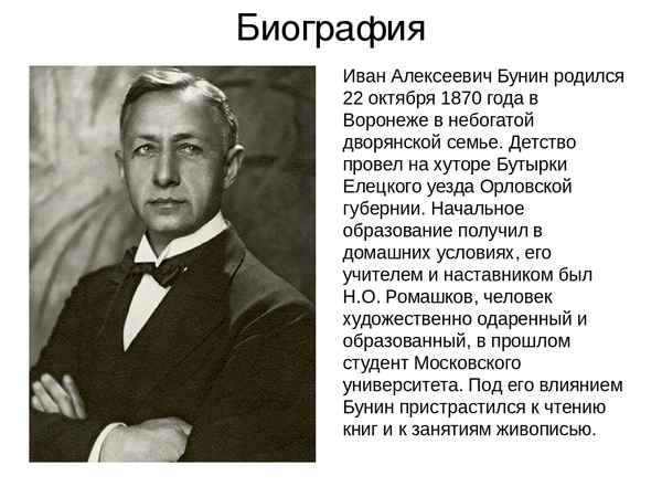 Краткая биография бунин