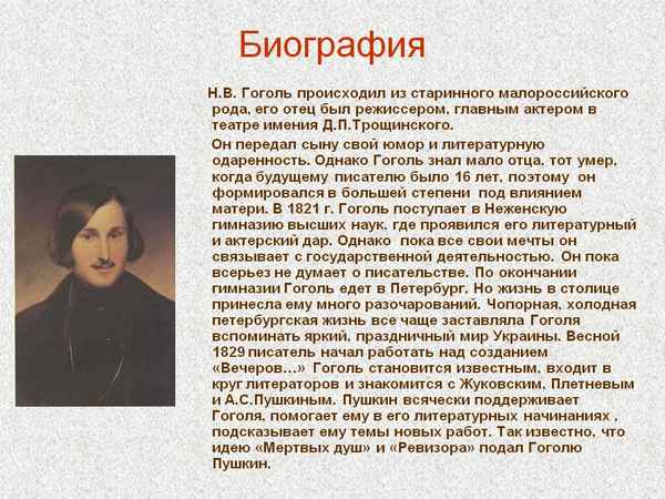 Краткая биография гоголь