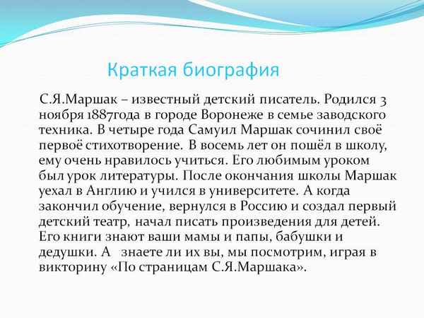 Краткая биография маршак