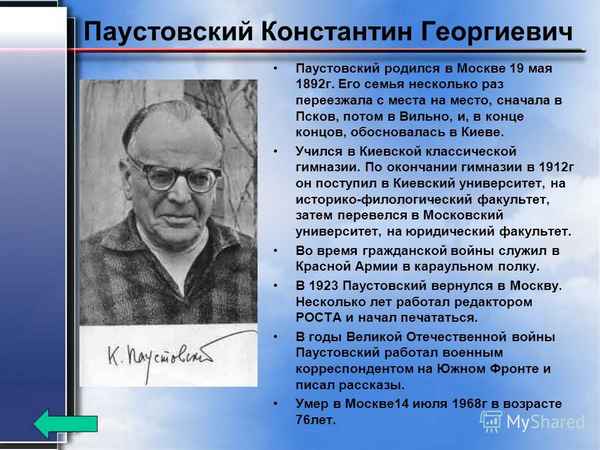 Краткая биография паустовский