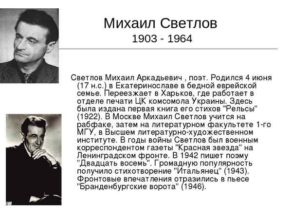 Краткая биография светлов