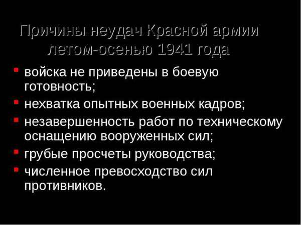 Боевые действия летом – осенью 1941 г. причины неудач красной армии.