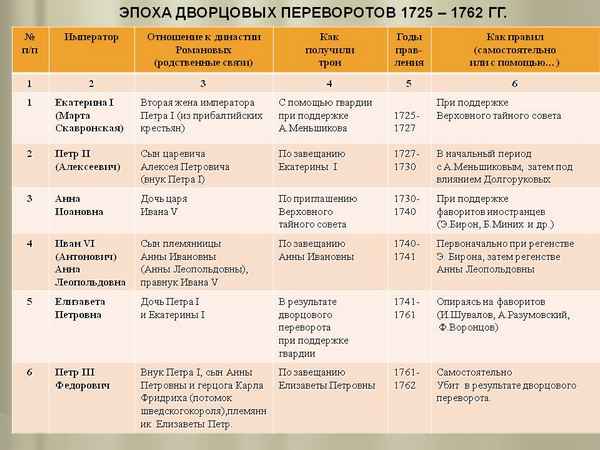 Дворцовые перевороты в россии (таблица)