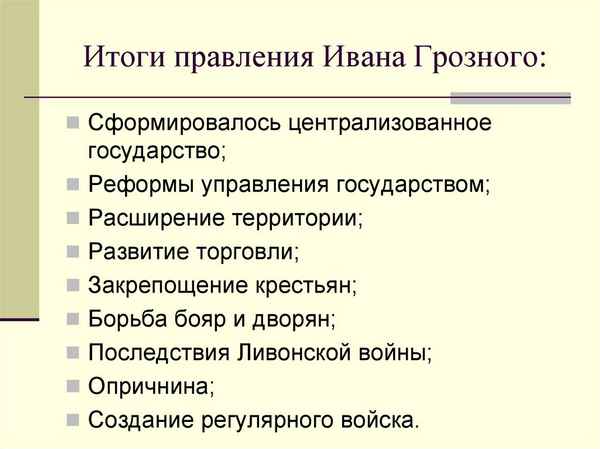 Итоги правления ивана грозного