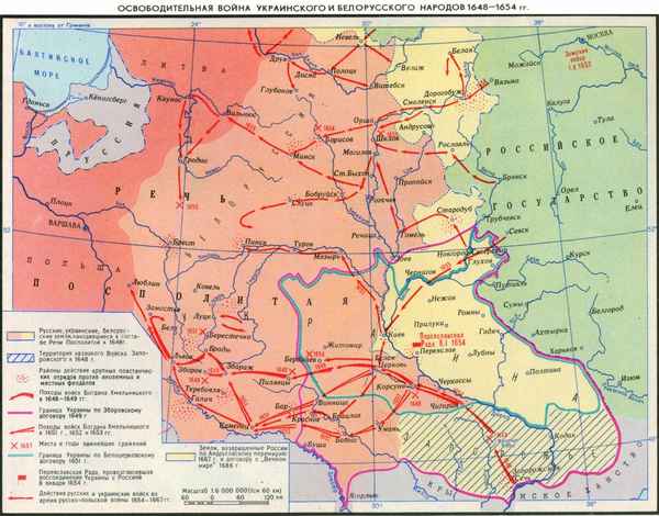 Карта: освободительная война на украине и в белоруссии 1648-1654 гг